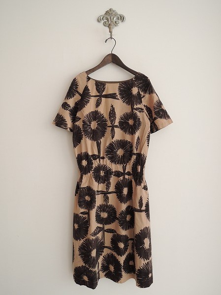 デザイン:mina perhonen 「daisy」の花柄ワンピースです。カラーはブラウンベージュ×チャコールブラウン、薄手素材で、プルオーバータイプです。ウエスト平ゴム入りで、ポケットはなく、裏地付きです。(掲載写真は、実商品のカラーにできるだけ近づけるよう努力はしておりますが、お使いのモニターや画面設定等によっては、色が異なって見える場合もございますので、予めご了承下さい)