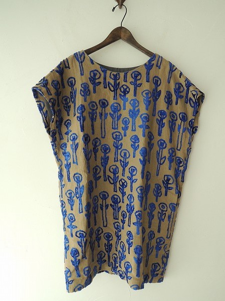 デザイン:mina perhonen 「day dream」の刺繍ワンピースです。カラーはカーキがかったグレーベージュの薄手生地ベースに、パイル地の鮮やかなブルーの花があしらわれております。フレンチスリーブデザインで、両サイドにシームポケットがあり、裏地付きです。(掲載写真は、実商品のカラーにできるだけ近づけるよう努力はしておりますが、お使いのモニターや画面設定等によっては、色が異なって見える場合もございますので、予めご了承下さい)