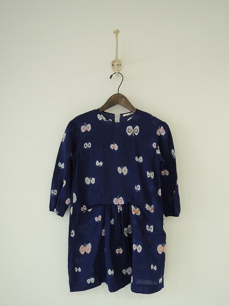 デザイン:mina perhonen「hana hane」の総柄ワンピースです。カラーはムラ染めの青ベースに、色とりどりの蝶々が施された、やや薄手素材です。バック半開ボタンで、袖口にはゴムが通っており、フロントウエストのタック下にギャザーが施されています。子供用アイテムです。(掲載写真は、実商品のカラーにできるだけ近づけるよう努力はしておりますが、お使いのモニターや画面設定等によっては、色が異なって見える場合もございますので、予めご了承下さい)