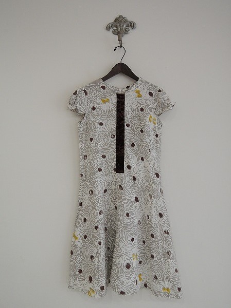 デザイン:mina perhonen 「papillon」のリネンプリントワンピースです。カラーはホワイト・濃グレー・濃ブラウン・マスタードで、総柄プリントの薄手生地であしらわれており、センターはベロア風のテープが施されております。背上部のフック&ファスナーで着脱でき、裏地は付いておりません。定価58800円の商品です。(掲載写真は、実商品のカラーにできるだけ近づけるよう努力はしておりますが、お使いのモニターや画面設定等によっては、色が異なって見える場合もございますので、予めご了承下さい)
