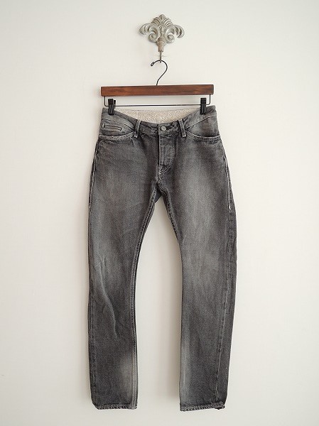 デザイン:mina perhonen 「always」のデニムパンツです。カラーはユーズド加工が施された褪せ感のあるグレーで、フロント比翼ボタンで着脱できます。5ポケットで、ウエスト裏地はホワイト系の「mermaide」刺繍になっております。 (掲載写真は、実商品のカラーにできるだけ近づけるよう努力はしておりますが、お使いのモニターや画面設定等によっては、色が異なって見える場合もございますので、予めご了承下さい)