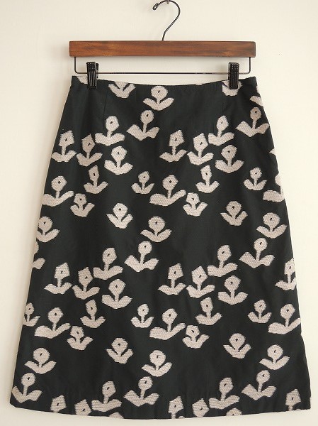 デザイン:mina perhonen 「garden」の刺繍台形スカートです。ベースカラーは深いダークグリーンで、ベビーピンクのパイル状の刺繍が施されております。左腰のフック&ファスナーで着脱できます。(掲載写真は、実商品のカラーにできるだけ近づけるよう努力はしておりますが、お使いのモニターや画面設定等によっては、色が異なって見える場合もございますので、予めご了承下さい)