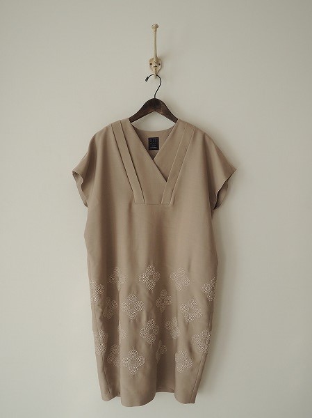 デザイン:2013-14年秋冬コレクション ミナペルホネン「hana beas」の刺繍ワンピースです。カラーはベージュで、花のビーズ不揃いのビーズが花の形に並べられ、 しとやかに咲いているような刺繍があしらわれらデザインで、裏地付きです。定価は63,000円です。 (掲載写真は、実商品のカラーにできるだけ近づけるよう努力はしておりますが、お使いのモニターや画面設定等によっては、色が異なって見える場合もございますので、予めご了承下さい)