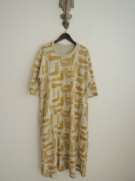 デザイン:mina perhonen 「mingling」のニットワンピースです。カラーはベージュベースに、マスタードで鳥のプリントがあしらわれたニット素材です。 両サイドにポケットがございます。(掲載写真は、実商品のカラーにできるだけ近づけるよう努力はしておりますが、お使いのモニターや画面設定等によっては、色が異なって見える場合もございますので、予めご了承下さい)