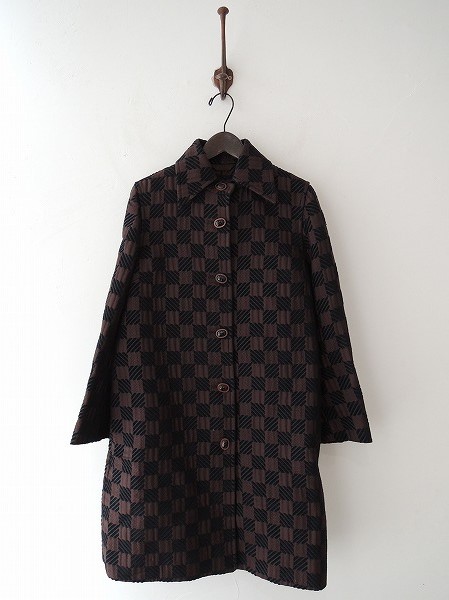 デザイン:mina perhonen 「the earth」のシルク混ロングコートです。カラーはブラック×ブラウンで、三種類の刺繍生地が格子状になった生地であしらわれております。袖口にかけてほんの少しフレアになったシルエットで、両腰にシームポケット付きです。バック裾に25cmのスリット入りです。(掲載写真は、実商品のカラーにできるだけ近づけるよう努力はしておりますが、お使いのモニターや画面設定等によっては、色が異なって見える場合もございますので、予めご了承下さい)