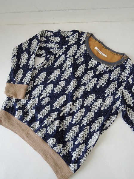デザイン:mina perhonen 「snow candle」のプリントロングTシャツです。ベースはネイビー×ホワイト×チャコールグレーで、総柄プリントの肌触りのよい生地であしらわれており、モカブラウンのリブに切替えられております。両肩のスナップボタンで着脱でき、子供用アイテムになっております。(掲載写真は、実商品のカラーにできるだけ近づけるよう努力はしておりますが、お使いのモニターや画面設定等によっては、色が異なって見える場合もございますので、予めご了承下さい)