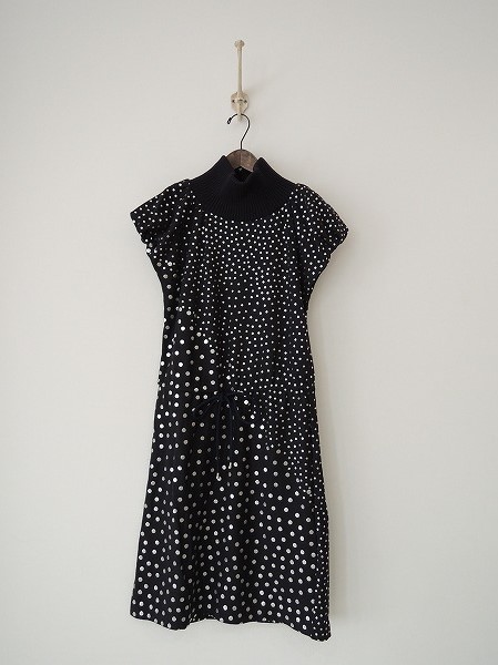 デザイン:mina perhonen「disco」のドット柄ワンピースです。カラーは濃紺ベースの裏毛地にシルバーのドット柄の箔プリントが施されています。襟元はリブに切替えられており、袖はバルーン風シルエットのデザインです。ウエストは紐入りで、定価34,650円の商品です。(掲載写真は、実商品のカラーにできるだけ近づけるよう努力はしておりますが、お使いのモニターや画面設定等によっては、色が異なって見える場合もございますので、予めご了承下さい)