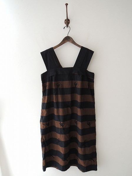 デザイン:ミナペルホネンランドリー 「mademoiselle」のボーダー柄ワンピースです。カラーは濃ネイビー×ブラウンで、ボーダー織の薄手生地であしらわれており、濃ネイビーのお花の刺繍が施されております。両腰にシームポケット付きです。(掲載写真は、実商品のカラーにできるだけ近づけるよう努力はしておりますが、お使いのモニターや画面設定等によっては、色が異なって見える場合もございますので、予めご了承下さい)