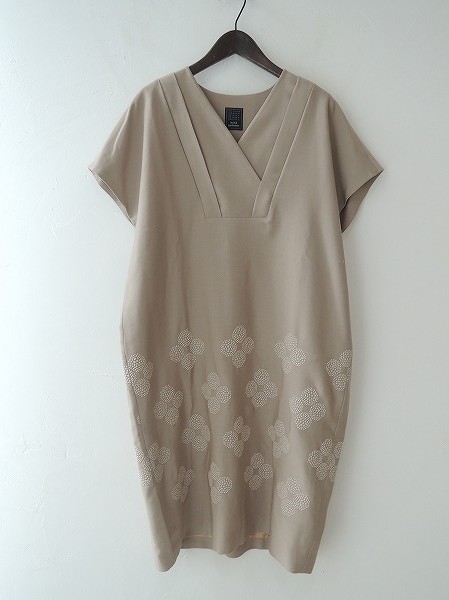 デザイン:mina perhonen「hana beads」の刺繍ワンピースです。カラーはベージュで、お花モチーフの刺繍が施されています。プルオーバータイプで、裏地付きです。定価63,000円です。(掲載写真は、実商品のカラーにできるだけ近づけるよう努力はしておりますが、お使いのモニターや画面設定等によっては、色が異なって見える場合もございますので、予めご了承下さい)