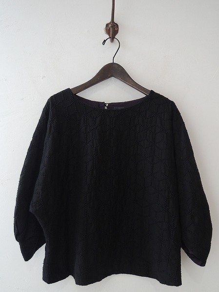 デザイン:mina perhonen 「sugar」のドルマンスリーブプルオーバーです。カラーな黒地に濃紺の刺繍が施されております。背上部にドロップホール付きで、袖口はこだわりのあるデザインになっております。裏地付きです。 (掲載写真は、実商品のカラーにできるだけ近づけるよう努力はしておりますが、お使いのモニターや画面設定等によっては、色が異なって見える場合もございますので、予めご了承下さい)