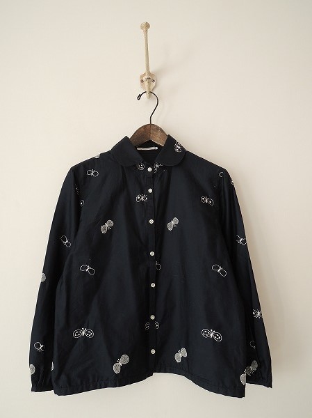デザイン:mina perhonen「choucho」の刺繍ブラウスです。カラーはネイビーで、白の刺繍が施されています。ボタン開閉です。 (掲載写真は、実商品のカラーにできるだけ近づけるよう努力はしておりますが、お使いのモニターや画面設定等によっては、色が異なって見える場合もございますので、予めご了承下さい)