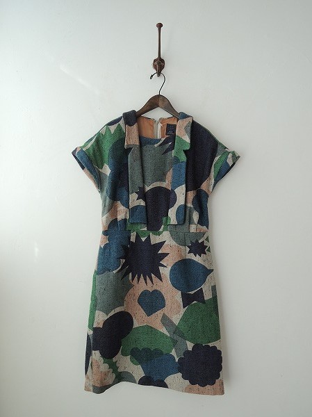 デザイン:mina perhonen 「flower basket」のワンピースです。カラーはライトグレー・ネイビー・グリーン・ピンクライトベージュなどで、総柄プリントのネップ入りの生地であしらわれております。襟付きのデザインで、背上部のフック&ファスナーで着脱できます。定価65,100円の商品です。(掲載写真は、実商品のカラーにできるだけ近づけるよう努力はしておりますが、お使いのモニターや画面設定等によっては、色が異なって見える場合もございますので、予めご了承下さい)