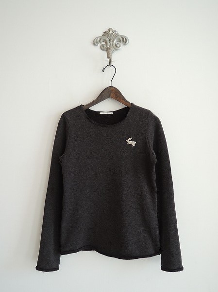 デザイン:mina perhonen 「hare」の裏毛カットソーです。カラーはチャコールグレーで、アンゴラ混のカットオフの裏毛素材であしらわれております。左胸に艶消しシルバーのうさぎさんのモチーフが施されております。(掲載写真は、実商品のカラーにできるだけ近づけるよう努力はしておりますが、お使いのモニターや画面設定等によっては、色が異なって見える場合もございますので、予めご了承下さい)