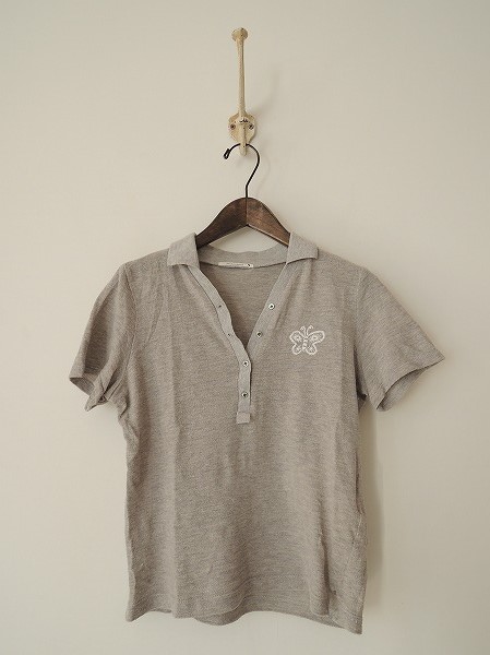 デザイン:mina perhonen 「library」のポロシャツです。カラーはグレーで、やや薄手の素材であしらわれております。半開ボタンで、左胸に刺繍が施され、裾サイドに3.5cmのスリット入りです。 (掲載写真は、実商品のカラーにできるだけ近づけるよう努力はしておりますが、お使いのモニターや画面設定等によっては、色が異なって見える場合もございますので、予めご了承下さい)