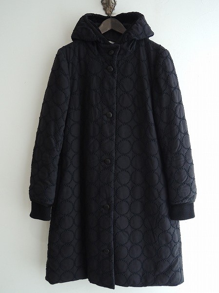 デザイン:mina perhonen 「tambourine」の刺繍入りダウンコートです。カラーは黒地にネイビーの刺繍で、中綿(ダウン&フェザー)入りの生地であしらわれており、刺繍が全面に施されております。フロントボタン開閉で、両腰にシームポケットが付いており、袖口はリブに切替えられております。裏地付きです (掲載写真は、実商品のカラーにできるだけ近づけるよう努力はしておりますが、お使いのモニターや画面設定等によっては、色が異なって見える場合もございますので、予めご了承下さい)