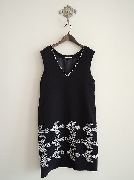 デザイン:mina perhonen 「odyssey」の刺繍入りワンピースです。カラーはネイビー×ホワイトで、ウール100%の薄手綾織り素材です。ネック部はハンドステッチであしらわれ、裾には刺繍が施されております。左脇のジッパーでの開閉で、ポケットはなく、裏地付きです。 (掲載写真は、実商品のカラーにできるだけ近づけるよう努力はしておりますが、お使いのモニターや画面設定等によっては、色が異なって見える場合もございますので、予めご了承下さい)