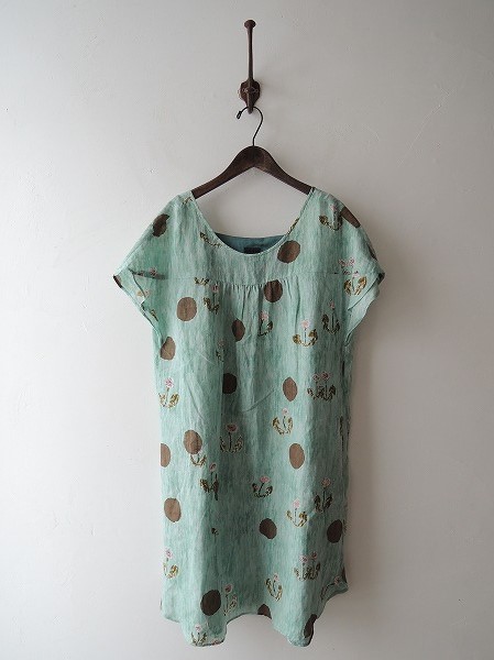 デザイン:mina perhonen「dandelion」のワンピースです。カラーミントの薄手地ベースに、褪せ感のあるブラウンのドット&くすみがかったピンク・ネイビー・モスグリーン系の花柄プリントが施されております。両腰にポケットがあり、裾ははラウンドカットで、裏地はございません 。(掲載写真は、実商品のカラーにできるだけ近づけるよう努力はしておりますが、お使いのモニターや画面設定等によっては、色が異なって見える場合もございますので、予めご了承下さい)