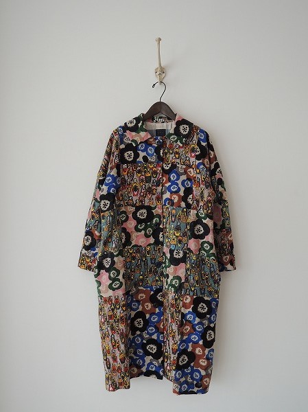デザイン:mina perhonen 「pala」のコートです。カラーはマルチカラーで、「matryoshka」と「millefiori」をつないだデザインです。毛羽のある素材で、フロントボタンで着脱できます。総裏地つきで、ブルーとホワイトのボーダー柄です。 (掲載写真は、実商品のカラーにできるだけ近づけるよう努力はしておりますが、お使いのモニターや画面設定等によっては、色が異なって見える場合もございますので、予めご了承下さい)