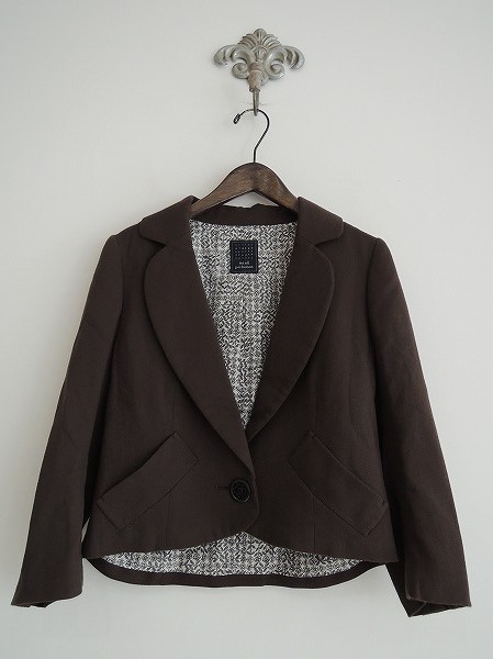 デザイン:mina perhonen 「souffle」のコットンジャケットです。カラーは焦げ茶色でやや薄手の生地であしらわれており、裏地は「sleeping rose」のテキスタイル柄になっております。フロントはひとつボタン開閉で、両裾にポケット付きです。(掲載写真は、実商品のカラーにできるだけ近づけるよう努力はしておりますが、お使いのモニターや画面設定等によっては、色が異なって見える場合もございますので、予めご了承下さい)