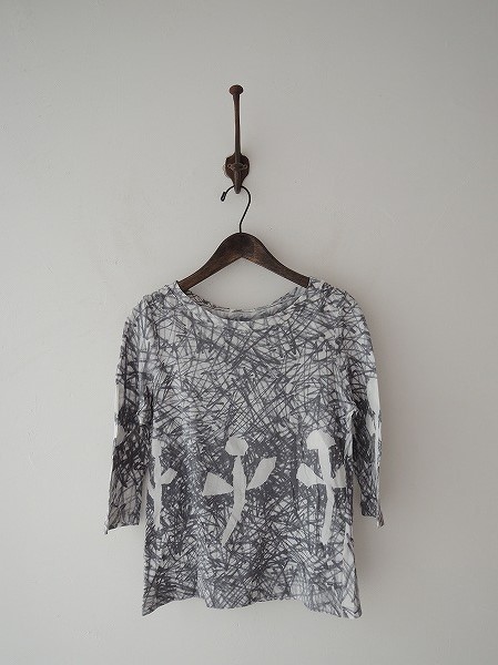 デザイン:mina perhonen「wind dance」の総柄カットソーです。カラーはグレー×オフホワイトで、総柄プリントがあしらわれています。(掲載写真は、実商品のカラーにできるだけ近づけるよう努力はしておりますが、お使いのモニターや画面設定等によっては、色が異なって見える場合もございますので、予めご了承下さい)