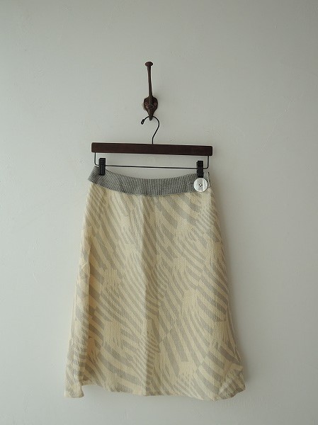 デザイン:mina perhonen「Fujisans」リネンスカートです。カラーはアイボリー×ライトグレーで、凹凸のある目の粗い素材です。裏地付きで、ポケットはなく、左サイドのフック&ジッパーでの開閉になっております。ウエスト部分はリブ編み素材であしらわれております。 (掲載写真は、実商品のカラーにできるだけ近づけるよう努力はしておりますが、お使いのモニターや画面設定等によっては、色が異なって見える場合もございますので、予めご了承下さい)