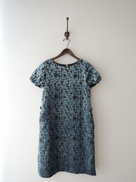 デザイン:mina perhonen 「chorus」のワンピースです。濃グレーベースにライトブルーのベロアのような光沢のあるパイル刺繍が全面に施されております。袖口はゴム入りで、両腰にシームポケットが付いており、バックウエスト部はベルトテープがあしらわれております。背上部のフック&ファスナーで着脱でます。定価67200円の商品です。(掲載写真は、実商品のカラーにできるだけ近づけるよう努力はしておりますが、お使いのモニターや画面設定等によっては、色が異なって見える場合もございますので、予めご了承下さい)