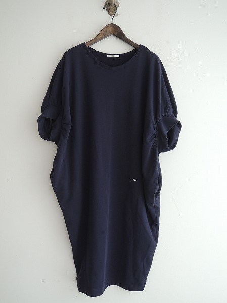 デザイン:mina perhonen 「moon」ワンピースです。カラーはネイビーで、やや薄手のスウェット素材です。左前腰辺りには小さな蝶の刺繍があしらわれ、両腰にはポケットがあり、少し裾が狭まったデザインです。(掲載写真は、実商品のカラーにできるだけ近づけるよう努力はしておりますが、お使いのモニターや画面設定等によっては、色が異なって見える場合もございますので、予めご了承下さい)