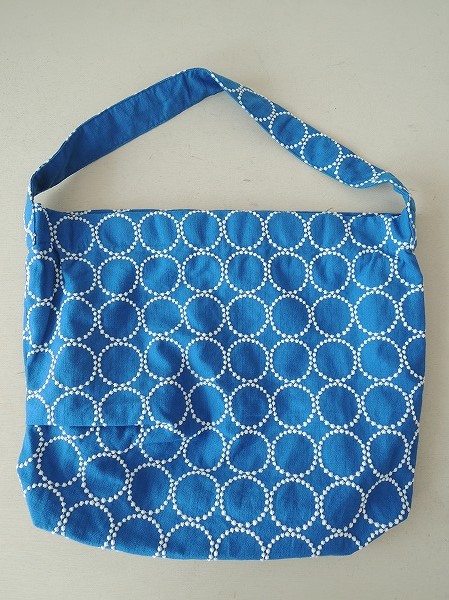 デザイン:mina perhonen 「tambourine」のボディバッグ大です。カラーはブルーベースで、ホワイトの刺繍が全体に施されたデザインで、開口部にはハンドバッグ用の持ち手があり、2WAYで使用いただけます。開口部はファスナー開閉で、内側にはグレーの裏地とポケットが1つ付いており、素材は表生地が綿75%、麻25%、刺繍部分&裏生地が綿100%です。定価21000円の商品です。