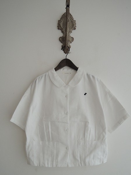 デザイン:mina perhonen 「air travel」のシャツです。カラーはホワイトで薄手生地であしらわれております。袖丈は五分くらい、フロントボタン開閉で、両裾にパッチポケットが付いており、左胸に濃ネイビーで蝶の刺繍が施されております。(掲載写真は、実商品のカラーにできるだけ近づけるよう努力はしておりますが、お使いのモニターや画面設定等によっては、色が異なって見える場合もございますので、予めご了承下さい)