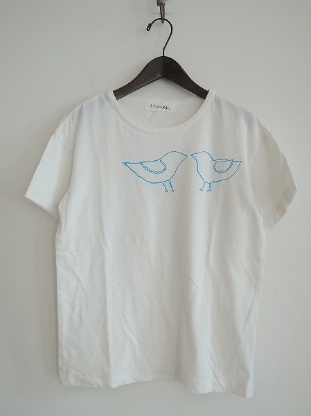 デザイン:mina perhonen 「tori to hana」のカットソーです。カラーはホワイトで、フロントにはブルーでプリントが施されています。(掲載写真は、実商品のカラーにできるだけ近づけるよう努力はしておりますが、お使いのモニターや画面設定等によっては、色が異なって見える場合もございますので、予めご了承下さい)