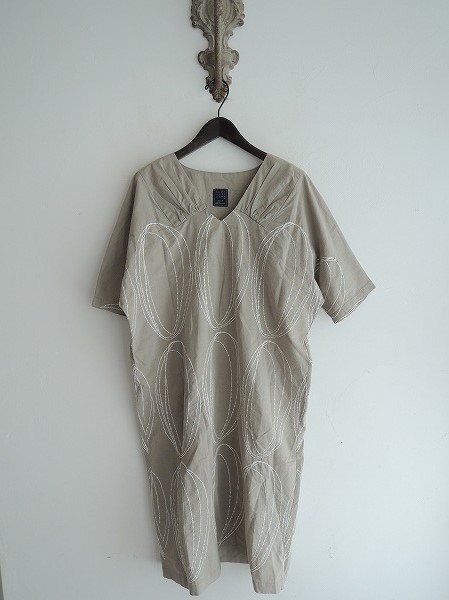デザイン:mina perhonen 「light hole」の刺繍ワンピースです。カラーはグレーベージュベースに、ホワイトで刺繍が施されています。やや薄手の素材で、プルオーバータイプです。(掲載写真は、実商品のカラーにできるだけ近づけるよう努力はしておりますが、お使いのモニターや画面設定等によっては、色が異なって見える場合もございますので、予めご了承下さい)