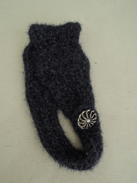 デザイン:mina perhonen×hitomi shinoyamaのヘアアクセです。カラーはくすんだパープル×光沢のあるネイビーのラメ糸のミックス編みで、留め部分にシルバーのお花モチーフがあしらわれています。