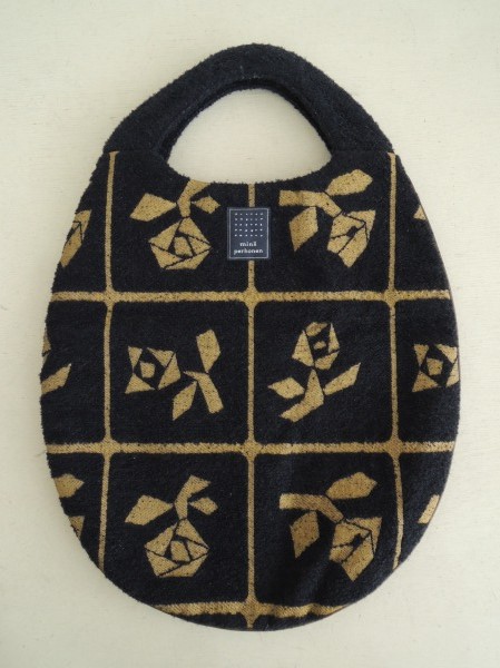 デザイン:mina perhonenの Luluシリーズのエッグバッグです。カラーはチャコールグレーのパイル地ベースにグレーマスタードの刺繍があしらわれており、ブラウンの合皮のパイピングが施されております。裏地はダークブラウンで、素材は表生地が毛73%、絹21%、ナイロン6% 裏生地がポリエステル100%です。