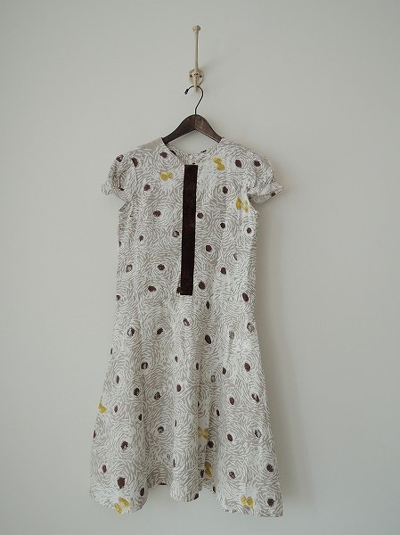 デザイン:mina perhonen 「papillon」の総柄ワンピースです。カラーはホワイト・グレー・濃ブラウン・マスタードで、総柄プリントの薄手生地です。センターはベロア風のテープが施され、バックのフック&ファスナーで着脱でき、裏地は付いておりません。(掲載写真は、実商品のカラーにできるだけ近づけるよう努力はしておりますが、お使いのモニターや画面設定等によっては、色が異なって見える場合もございますので、予めご了承下さい)