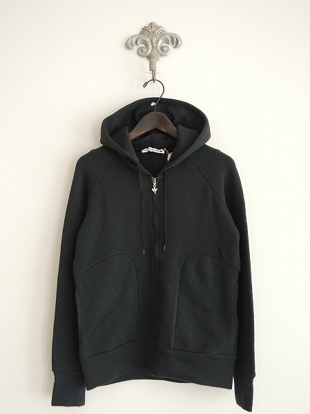 デザイン:mina perhonen 「start」のスウェットパーカです。カラーは黒っぽいダークグリーンで、両サイドにはポケットがあり、フロントはジッパー開閉です。(掲載写真は、実商品のカラーにできるだけ近づけるよう努力はしておりますが、お使いのモニターや画面設定等によっては、色が異なって見える場合もございますので、予めご了承下さい)