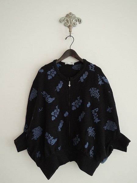 デザイン:mina perhonen 「forest parade」のカットソーです。カラーはブラックのフリース地ベースに、ブルー系の刺繍が施されています。フロントジッパーで着脱し、ドルマンスリーブデザインで、定価は34,650円です。(掲載写真は、実商品のカラーにできるだけ近づけるよう努力はしておりますが、お使いのモニターや画面設定等によっては、色が異なって見える場合もございますので、予めご了承下さい)