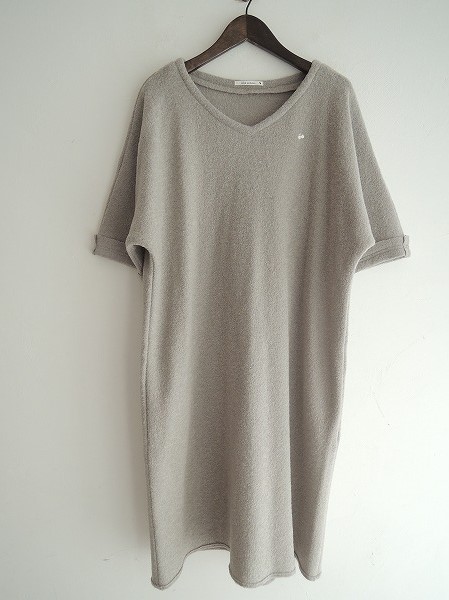 デザイン:mina perhonen「conceal」のワンピースです。カラーはライトグレーで、カットオフされたパイル素材であしらわれています。左胸辺りには小さな蝶の刺繍が施され、裏地はございません。(掲載写真は、実商品のカラーにできるだけ近づけるよう努力はしておりますが、お使いのモニターや画面設定等によっては、色が異なって見える場合もございますので、予めご了承下さい)