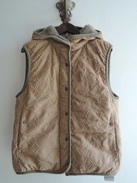 デザイン:mina perhonen 「tambourine」のダウンベストです。カラーは濃ベージュ(プライスタグ・ベージュ)で、サークル刺繍の施されたダウン入り素材であしらわれております。フロントはスナップボタン&ジッパー開閉で、フード内側にボア付きです。両腰にはポケットがあり、裏地付きで、定価(税抜)は64,000円です。 (掲載写真は、実商品のカラーにできるだけ近づけるよう努力はしておりますが、お使いのモニターや画面設定等によっては、色が異なって見える場合もございますので、予めご了承下さい)