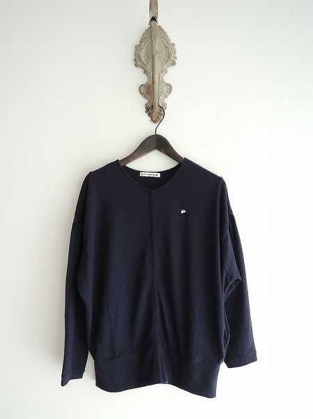 デザイン:mina perhonen 「cozy」のカーディガンです。カラーはネイビーで、やや毛羽感のある柔らかなアンゴラ素材です。フロントは内スナップボタン開閉で、左胸にはホワイトの蝶の刺繍入りです。定価29,400円の商品です。 (掲載写真は、実商品のカラーにできるだけ近づけるよう努力はしておりますが、お使いのモニターや画面設定等によっては、色が異なって見える場合もございますので、予めご了承下さい)
