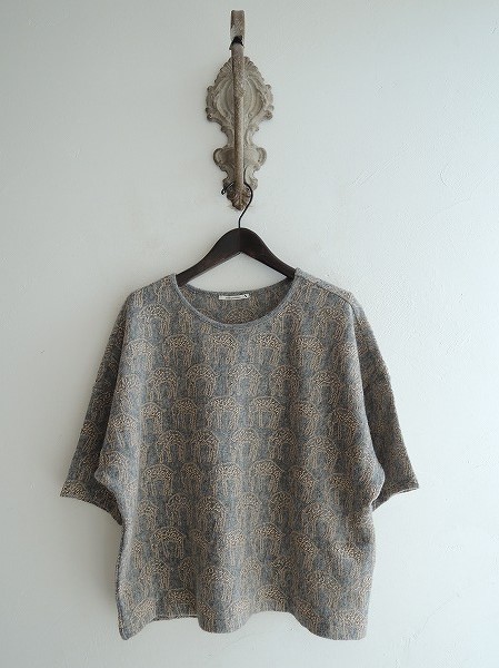 デザイン:mina perhonen 「count」のニットプルオーバーです。カラーはミックスグレーで、アンゴラ混の柔らかな手触りの薄手ニットであしらわれており、ベージュの刺繍が全面に施されております。 (掲載写真は、実商品のカラーにできるだけ近づけるよう努力はしておりますが、お使いのモニターや画面設定等によっては、色が異なって見える場合もございますので、予めご了承下さい)