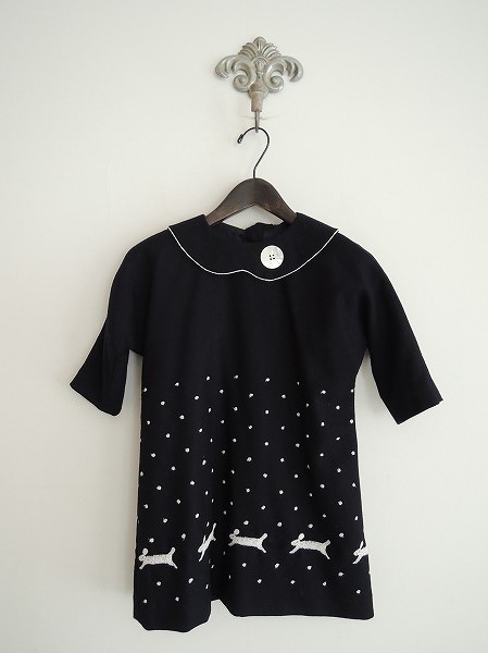 デザイン:mina perhonen 「run run run」のワンピースです。カラーは濃紺ベースに、ホワイトでドット&うさぎの刺繍が施されています。背ボタン開閉で、衿のフロントには飾りボタンがあしらわれ、バックで結ぶデザインになっています。裏地付きで、定価は27,300円のお品です。子供用アイテムです。 (掲載写真は、実商品のカラーにできるだけ近づけるよう努力はしておりますが、お使いのモニターや画面設定等によっては、色が異なって見える場合もございますので、予めご了承下さい)