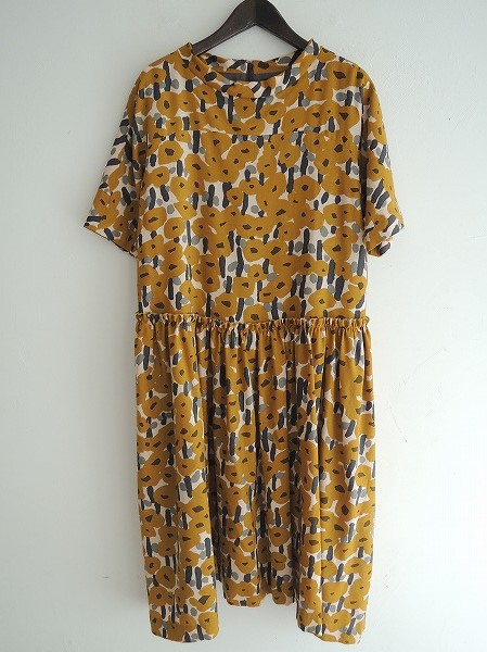 デザイン:mina perhonen 「sonata」のワンピースです。カラーは薄ピンクベージュベースに、黄土色・グレーなどの花柄です。バックフック&ファスナーで着脱でき、ウエスト辺りでギャザー切替が施されております。裏地付きです。 定価65,100円です。(掲載写真は、実商品のカラーにできるだけ近づけるよう努力はしておりますが、お使いのモニターや画面設定等によっては、色が異なって見える場合もございますので、予めご了承下さい)