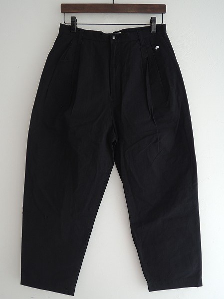デザイン:mina perhonen 「luonto」のタックパンツです。カラーは黒で、フロントボタン&ジッパーで着脱できます。両腰・両ヒップにポケットがあります。左腰下に蝶の刺繍が施されています。(掲載写真は、実商品のカラーにできるだけ近づけるよう努力はしておりますが、お使いのモニターや画面設定等によっては、色が異なって見える場合もございますので、予めご了承下さい)