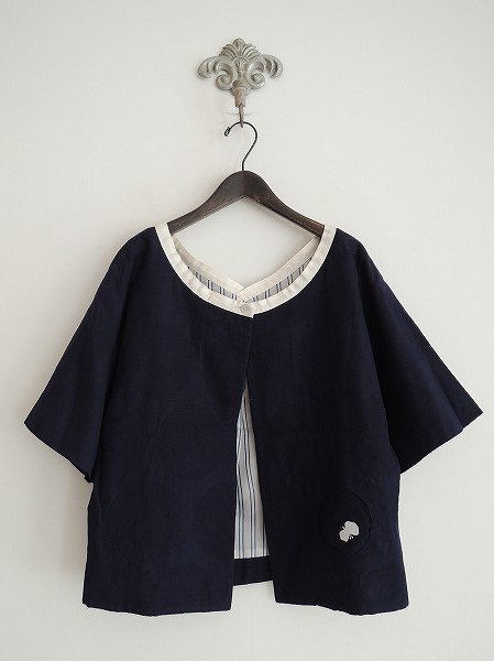 デザイン:minaperhonen「kakurenbo」のジャケットです。カラーはネイビーで、1つボタン開閉になります。大きなドット柄の下には、チョウチョの刺繍があり、自分の好きなところを切り取ってチョウチョを見せる事ができるアイテムです。裏地付きです。(掲載写真は、実商品のカラーにできるだけ近づけるよう努力はしておりますが、お使いのモニターや画面設定等によっては、色が異なって見える場合もございますので、予めご了承下さい)
