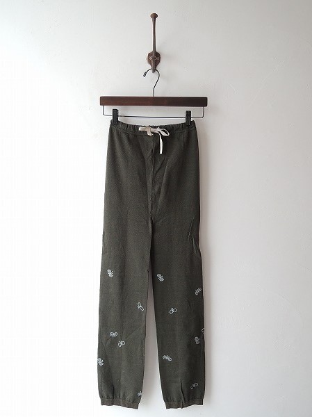 実寸サイズ:ウエスト幅(ゴム・ひも入り)28cm、ヒップ幅33cm、股上32cm、股下69cm、裾幅14cm、太もも幅18cm