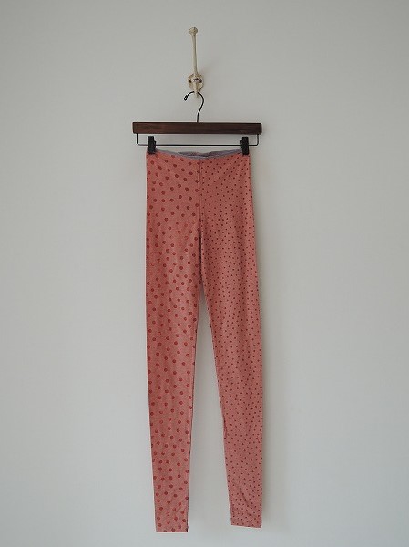 デザイン:mina perhonen「disco」の透かしドット柄レギンスです。カラーはくすんだピンク地に透け感のあるドット模様が全体に施されたデザインです。定価12,600円です。 (掲載写真は、実商品のカラーにできるだけ近づけるよう努力はしておりますが、お使いのモニターや画面設定等によっては、色が異なって見える場合もございますので、予めご了承下さい)