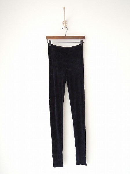 デザイン:mina perhonen「hana tsumiki」のレギンスです。カラーは黒のシースルー地に、濃紺のベロア模様が施されています。ウエストゴムで、定価16,800円です。(掲載写真は、実商品のカラーにできるだけ近づけるよう努力はしておりますが、お使いのモニターや画面設定等によっては、色が異なって見える場合もございますので、予めご了承下さい)