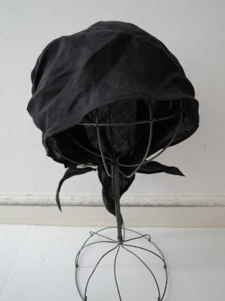 デザイン:mina perhonenのヘッドアクセです。カラーはブラックで、コットンリネンのような薄手生地です。バックを結んで調節して頂けるようになっています。