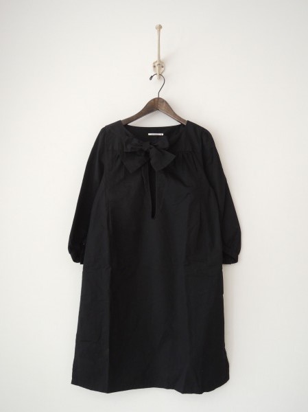 デザイン:mina perhonen「tranquille」のシャツワンピースです。カラーはブラック、薄手の素材で裏地は付いておりません。胸元のボウタイで着脱でき、肩に切替ギャザーがあしらわれおります。胸元は約25cmの深い切込みがあり、裾両脇は約16cmのスリットがございます。 (掲載写真は、実商品のカラーにできるだけ近づけるよう努力はしておりますが、お使いのモニターや画面設定等によっては、色が異なって見える場合もございますので、予めご了承下さい)