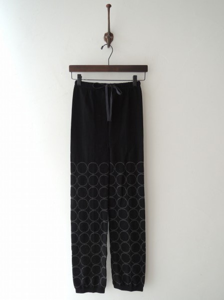 デザイン:mina perhonen 「tambourine」のニットレギンスです。カラーはブラック×グレーの柄編みであしらわれ、ウエストは総ゴム&ひも入りです。定価12,600円です。 (掲載写真は、実商品のカラーにできるだけ近づけるよう努力はしておりますが、お使いのモニターや画面設定等によっては、色が異なって見える場合もございますので、予めご了承下さい)